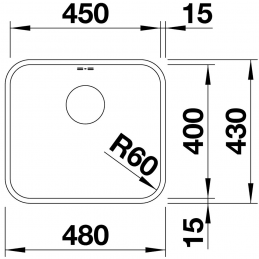 Spülenmaße: 480 × 430 mm