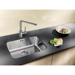 Blanco Supra 500-U ist die ideale Wahl für minimalistische und moderne Küchen. Dieses hochwertige Edelstahlspülbecken mit den Gesamtmaßen 530 × 430 mm ist für Unterschränke mit einer Breite ab 60 cm vorgesehen.
