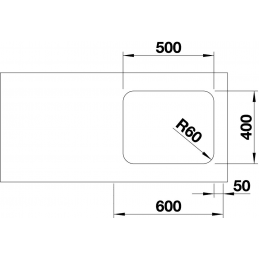 Das Becken mit den Maßen 500 × 400 mm und einer Tiefe von 175 mm (Radius R60) bietet ausreichend Platz für das komfortable Spülen auch größerer Geschirrteile.