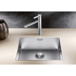 BLANCO CLARON Durinox® zeichnet sich durch elegant klares Design ohne sichtbares Muster am Boden der Spüle aus, was den minimalistischen Look und die einfache Pflege unterstreicht.