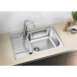 Blanco Dinas XL 6 S Compact ist ein praktisches und modernes Edelstahlspülbecken mit großzügiger Beckenform und elegantem, zeitlosem Design. Dank der Maße 780 × 500 mm und einer Beckentiefe von 190 mm bietet es ausreichend Platz auch für größeres Geschirr und anspruchsvollere Küchenaufgaben. Es ist geeignet für Unterschränke mit einer Mindestbreite von 60 cm und für die herkömmliche Montage auf der Arbeitsplatte vorgesehen.