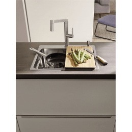 • Multifunktionales ETAGON-System – zwei universelle Schienen ermöglichen eine effiziente Speisenzubereitung, den Umgang mit Geschirr und das Abtropfen direkt über dem Becken.