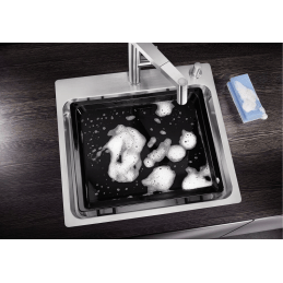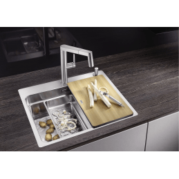 Blanco Etagon 500-IF/A ist ein Premium-Edelstahlspülbecken, das eine völlig neue Dimension der Küchenarbeit eröffnet. Es kombiniert eine große, geräumige Becken mit einer innovativen ETAGON-Lösung – einem universellen Schienensystem, das eine dritte Arbeitsebene schafft und die Möglichkeiten der Spüle erheblich erweitert.