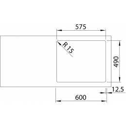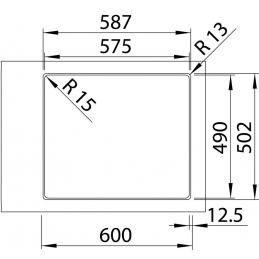 Die Spüle mit den Gesamtmaßen 585 × 500 mm ist für Unterschränke mit einer Breite ab 60 cm vorgesehen.