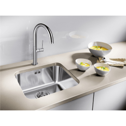 Blanco Supra 400-U stellt eine elegante und praktische Lösung für moderne Küchen dar. Dieses Edelstahlspülbecken mit den Maßen 430 × 430 mm ist für Unterschränke mit einer Breite ab 45 cm vorgesehen.
