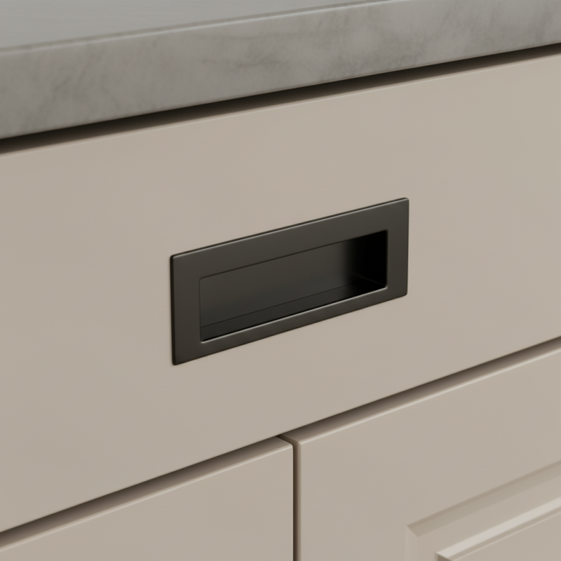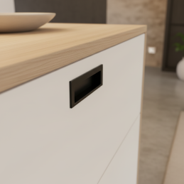 Eleganter minimalistischer Griff, der zum Einfräsen in die Fläche von Türen oder Schubladen bestimmt ist. In glänzender Goldausführung wirkt er luxuriös und modern, wodurch er die ideale Wahl für Möbel in Premium-Innenräumen ist.
