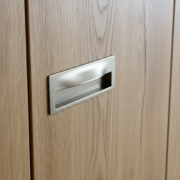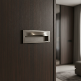 Moderne eingelassener Griff GALOS in eleganter Ausführung gebürstetes Nickel ist die ideale Lösung für Schiebetüren, Schubladen oder Möbeltüren, bei denen ein klares und minimalistisches Erscheinungsbild gewünscht wird. Dank der eingelassenen Ausführung ragt er nicht aus der Möbeloberfläche heraus und eignet sich somit auch für enge Räume.