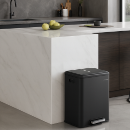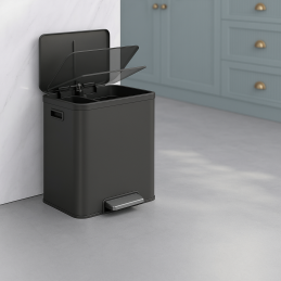 Der Mülleimer STING bietet eine elegante und effiziente Lösung für die Abfalltrennung direkt im Haushalt oder Büro. Dank zwei separater Fächer mit einem Volumen von 2×15 Litern haben Sie Kunststoff, Papier, Glas oder gemischten Abfall immer übersichtlich in einem Behälter getrennt – ohne die Notwendigkeit mehrerer Behälter.