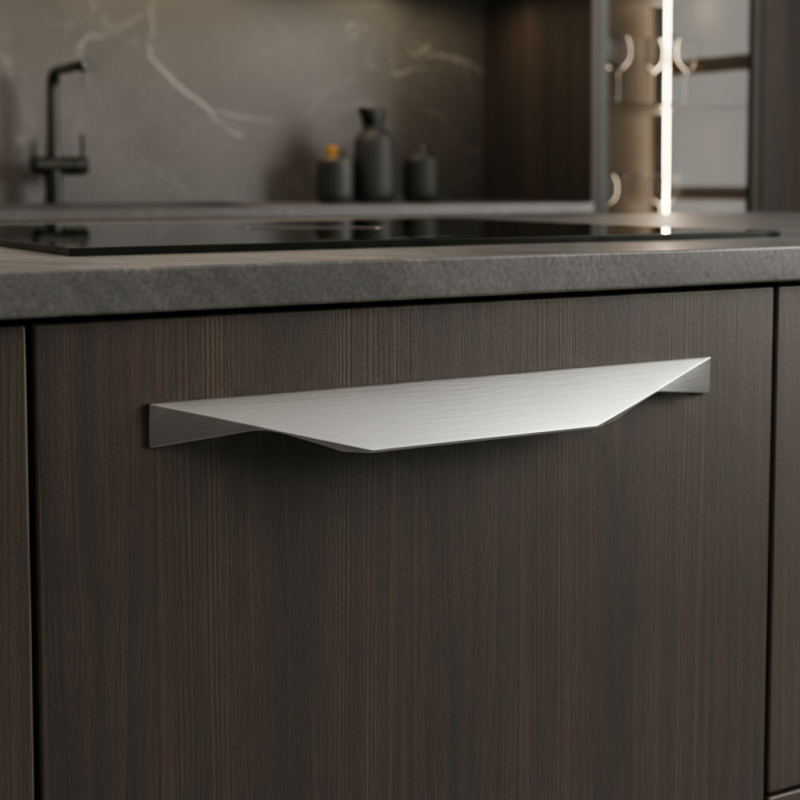 Die Form des Griffs ist so gestaltet, dass sie einen komfortablen und natürlichen Griff bietet, wobei das hervorragende ergonomische Profil ein bequemes Öffnen von Schränken und Schubladen gewährleistet.