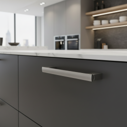 Der Griff PUERTO ist dank seiner klassischen Form und seiner vielseitigen Verwendbarkeit eines der beliebtesten Modelle der Kollektion. Er eignet sich sowohl für moderne als auch für traditionelle Innenräume - Küchen, Bäder, Wohnräume oder Büros.