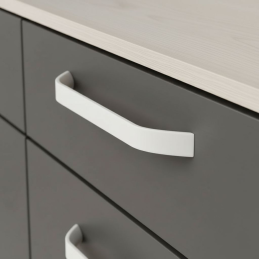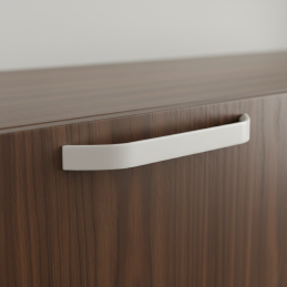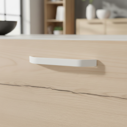 Der Griff ZANAR in der Ausführung weiß matt verleiht einen frischen, klaren und minimalistischen Ausdruck, der perfekt zu hellen, skandinavischen sowie modernen Innenräumen passt. Die leicht abgewinkelte, kantige Form wirkt elegant und modern und bietet gleichzeitig einen bequemen Griff für den täglichen Gebrauch.