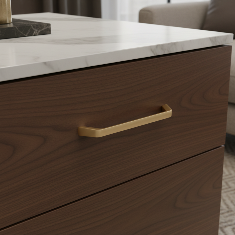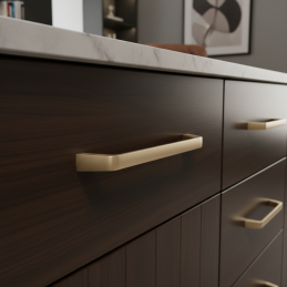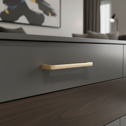 Der Griff SAMARA in gebürsteter Goldfarbe ist die ideale Wahl für alle, die ein hochwertiges, elegantes und optisch markantes Detail suchen, das den Möbeln einen modernen und zugleich zeitlosen Charakter verleiht.