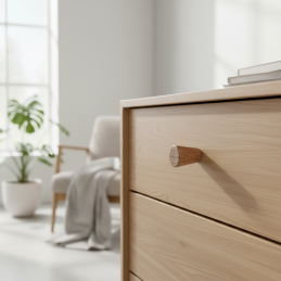 Schlichter und eleganter Knopf aus Buchenholz, der zu jeder Einrichtung passt. Inklusive Schrauben
