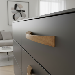 Der Holzgriff GALEOS in der Ausführung lackierte Eiche ist ein Designelement, das moderne Eleganz mit echtem Naturmaterial verbindet. Seine sanft gebogene Form wirkt luftig und leicht, bietet aber gleichzeitig einen bequemen Griff für den täglichen Gebrauch. Lackierte Eiche betont die natürliche Maserung des Holzes und sorgt für einen langanhaltenden Oberflächenschutz.