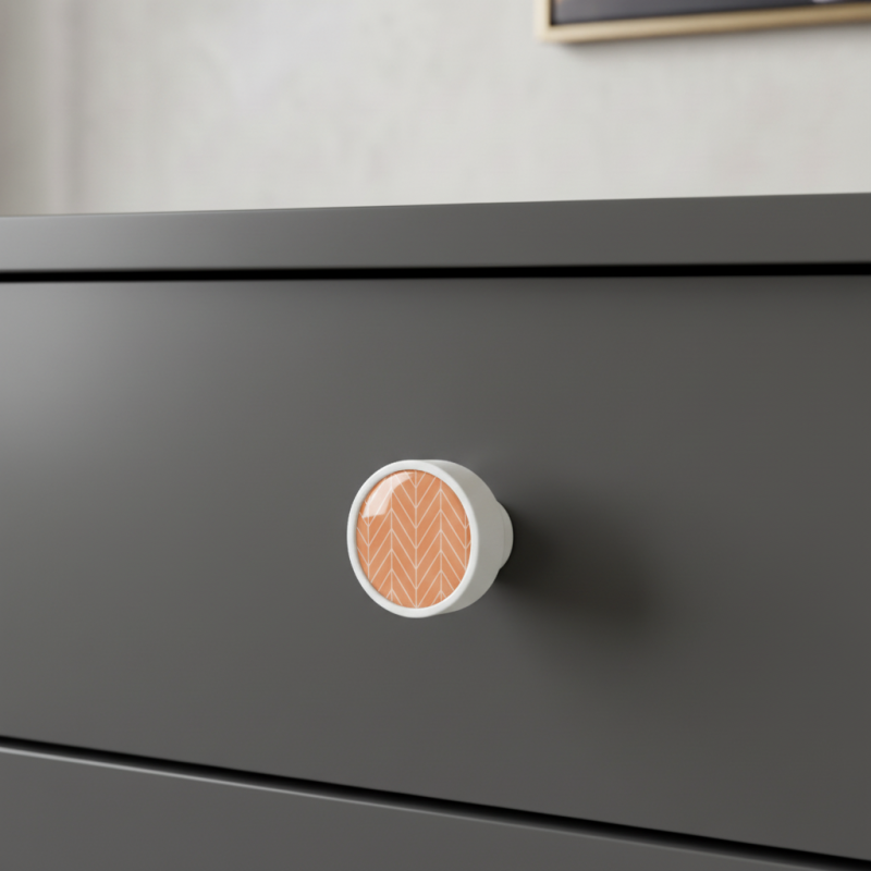 Der Holzgriff ARSIA in matter weißer Ausführung mit dem Motiv einer orangefarbenen Tanne ist ein verspieltes, modernes und frisches Accessoire, das Optimismus und angenehme Farbenergie ins Interieur bringt. Dank der Kombination aus massivem Buchenholz, hochwertigem weißen Lack und markantem Naturmuster ist dieser Griff das ideale dekorative Element für stilvolle und kreative Innenräume.