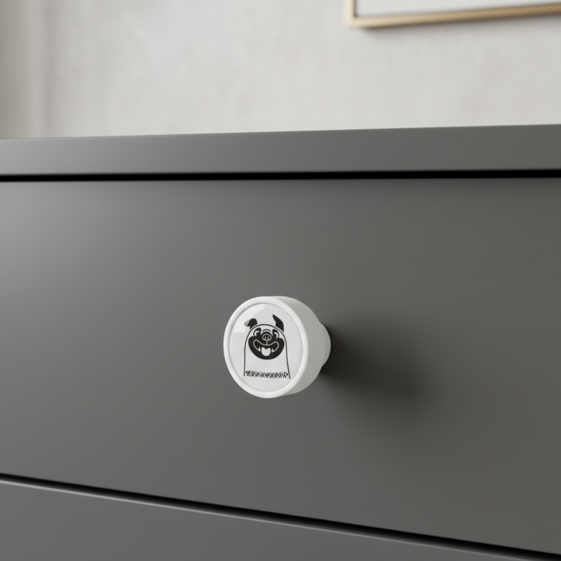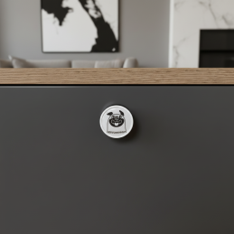 Holzgriff ARSIA in weißer Ausführung mit fröhlichem Bulldoggen-Motiv ist das ideale Accessoire für Kinderzimmer, Hundefreunde oder Interieurs, die ein wenig Verspieltheit verlangen. Hergestellt aus massivem Buchenholz, lackiert in glattem Weiß und verziert mit einer markanten schwarz-weißen Hundeillustration, verleiht er den Möbeln einen außergewöhnlichen und sympathischen Charakter.