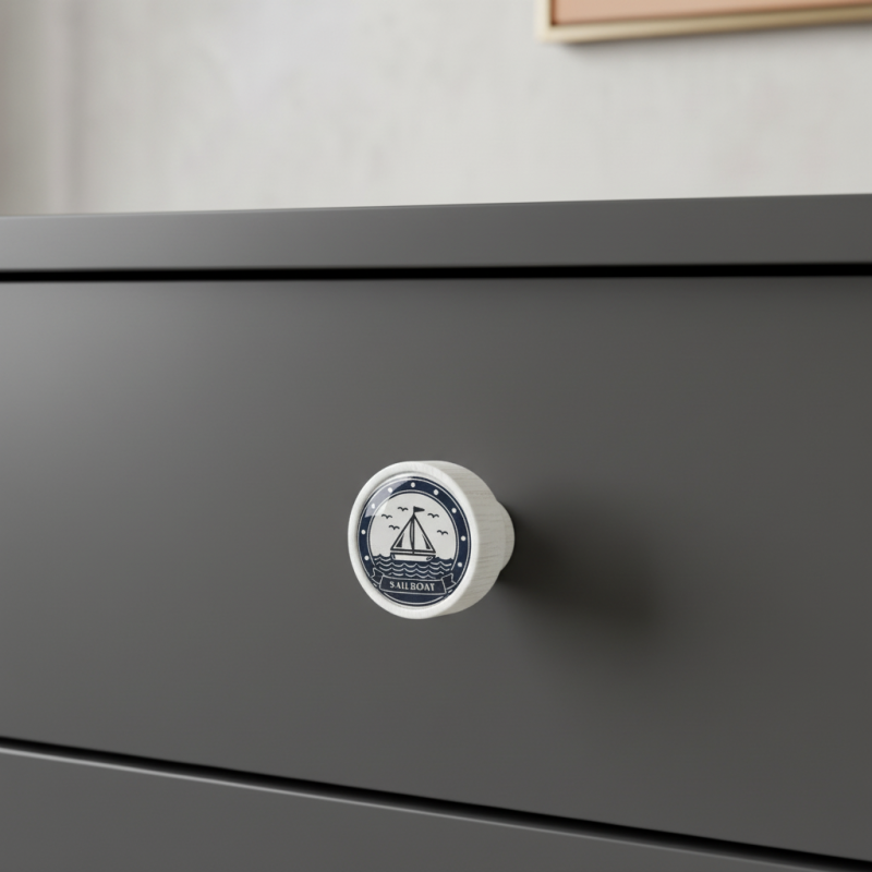 Holzgriff ARSIA in weißer Ausführung mit verspieltem maritimen Bootsmotiv ist das perfekte Accessoire für Kinderzimmer, thematische Interieurs sowie moderne Möbel, die einen frischen Akzent brauchen. Hergestellt aus massivem Buchenholz und mit einem sanften matten Weiß lackiert, wirkt er sauber, elegant und zugleich frisch.