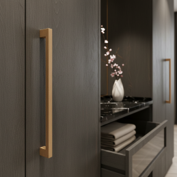Dank der einfachen kantigen Form wirkt der Griff modern, sauber und fügt sich leicht in skandinavische, natürliche sowie moderne Interieurs ein.