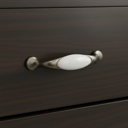 Der Griff GAUDIA stellt eine elegante Verbindung von traditionellem Design und einem dezenten dekorativen Akzent dar. Die Kombination aus alt-silbernem Metall und einer Porzellaneinlage in Vanillefarbe verleiht den Möbeln einen außergewöhnlichen Charakter – sie wirkt romantisch, vintage und zugleich äußerst stilvoll.