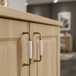 Der elegante rustikale Griff BLANCA ist die ideale Wahl für alle, die ein Detail mit einem Hauch von Retro und traditionellem Design suchen. Dank der Kombination aus Alt-Messing und weißem Porzellan wirkt er zeitlos und ist eine beliebte Wahl bei der Renovierung oder dem Austausch von Griffen an älteren Möbeln. Er ergänzt hervorragend Küchen-, Landhaus-, Provence- sowie klassische Einrichtungsstile.