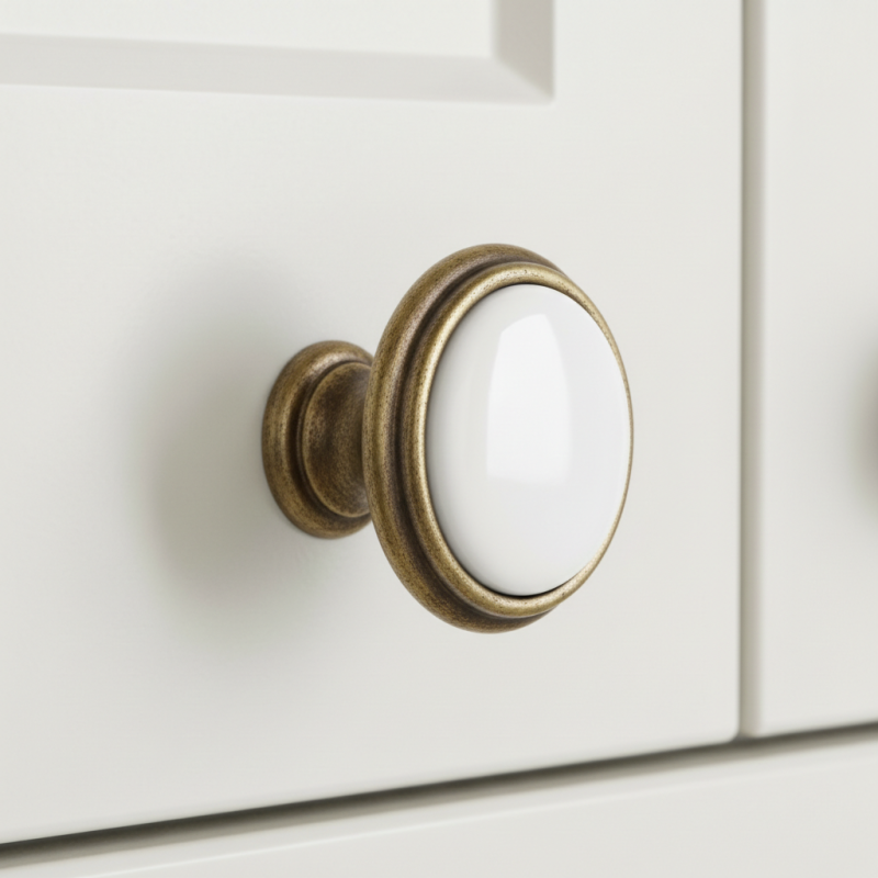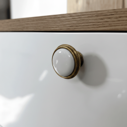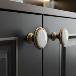 Der elegante Griff FRESNO in antik-messingfarbener Ausführung vereint einen hochwertigen Metallkörper mit Keramik-Dekor und schafft so ein zeitloses und universelles Accessoire, das sowohl für moderne als auch klassisch gestaltete Innenräume geeignet ist. Seine harmonische Formgebung und feinen Linien verleihen den Möbeln Noblesse, während die widerstandsfähigen Materialien eine lange Lebensdauer und komfortable Nutzung garantieren.