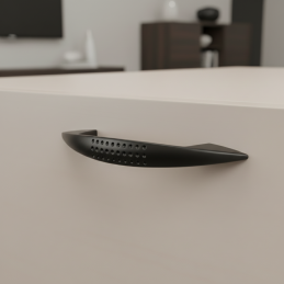 Der moderne Griff TYLLAU in schwarzer matter Ausführung ist ein stilvolles und zeitloses Accessoire, das sich für Küchen-, Bad-, Wohn- oder Büromöbel eignet. Die matte schwarze Farbe ist wegen ihres eleganten Aussehens besonders beliebt und harmoniert wunderbar mit Holz, industriellen Elementen und minimalistischen Möbeln.