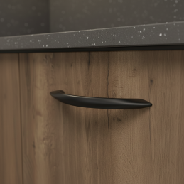 Der Griff KINGSTON in eleganter schwarzer, matter Ausführung bietet ein klares, modernes Design und eine zeitlose Bogenform. Er eignet sich für Küchen-, Bad- und Wohnmöbel und bietet dank des durchdacht geformten Bogens einen bequemen und ergonomischen Griff. Die matte schwarze Oberfläche unterstreicht seinen modernen Charakter und verleiht den Möbeln einen markanten, stilvollen Akzent.
