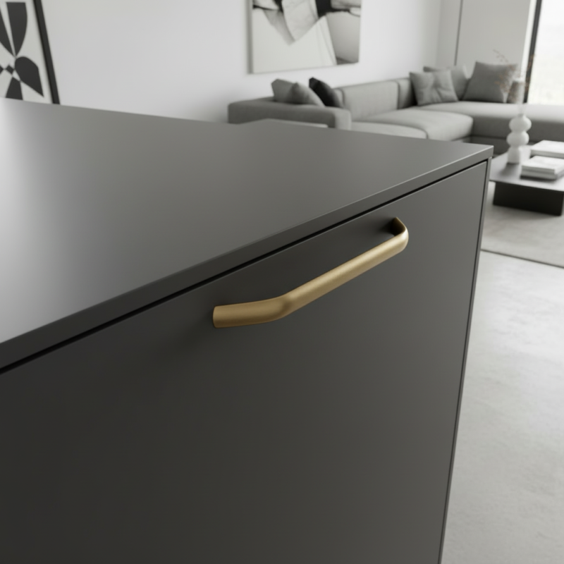 Der Griff DIVA in der Oberfläche Gebürstetes Gold ist ein elegantes und zeitloses Accessoire, das sich für moderne, minimalistische und industrielle Innenräume eignet. Die sanft abgerundete Form und die hochwertige Metallverarbeitung verleihen den Möbeln ein Premium-Aussehen. Die Edelstahlfarbe ist universell, leicht kombinierbar und wirkt sauber und professionell – eine großartige Wahl für Küche, Bad und Wohnzimmer.