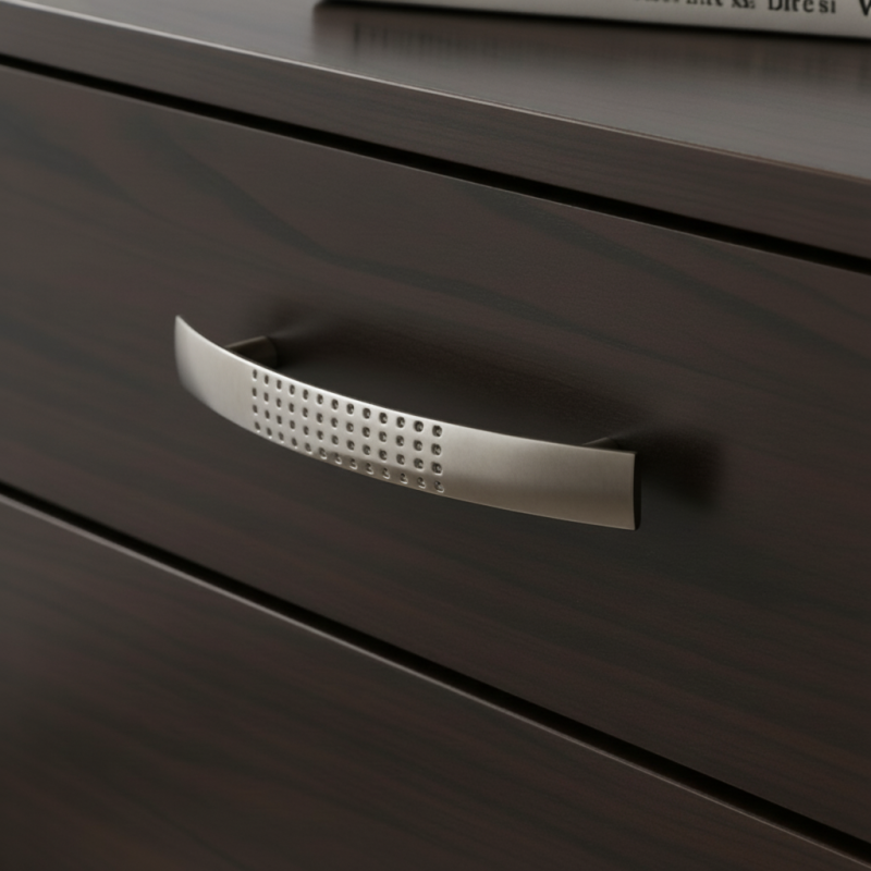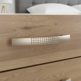 Der Griff VELLEN in mattem Nickel-Finish wirkt elegant, zeitlos und sehr vielseitig. Die leicht gebogene Form liegt angenehm in der Hand und die dekorative Struktur aus kleinen Punkten verleiht dem Griff einen interessanten visuellen Effekt sowie eine praktische Anti-Rutsch-Funktion. Ideal für moderne und minimalistische Innenräume.