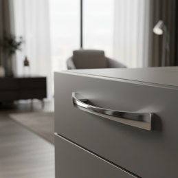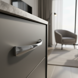 Glänzender Chrom ist universell, elegant und zeitlos. Der Griff SIMPLO in dieser Ausführung betont die klaren Linien der Möbel und verleiht ihnen einen modernen, dezent luxuriösen Charakter.