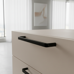 Eleganter und moderner Griff BRISA in der Ausführung schwarz matt ist die ideale Wahl für moderne Innenräume, industriellen Stil sowie minimalistische Küchen oder Möbel. Die matte schwarze Oberfläche wirkt luxuriös, ist widerstandsfähig gegen Fingerabdrücke und verleiht den Möbeln ein markantes Designelement.