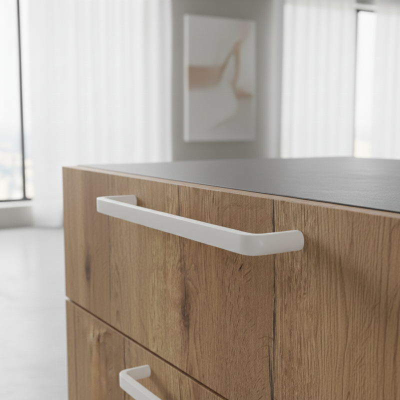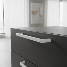Moderne und universelle Griffleiste BRISA in der Ausführung weiß matt ist das ideale Accessoire für Möbel im skandinavischen, minimalistischen und modernen Stil. Die schlichte Form mit sanft abgerundeten Kanten wirkt elegant und zugleich sehr praktisch.
