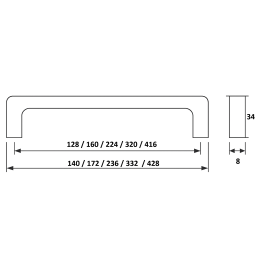 Er ist in mehreren Größen erhältlich - mit unterschiedlichen Abständen der Befestigungslöcher und entsprechenden Gesamtlängen der Griffe. Die Montage ist schnell und einfach, alle notwendigen Schrauben sind im Lieferumfang enthalten.