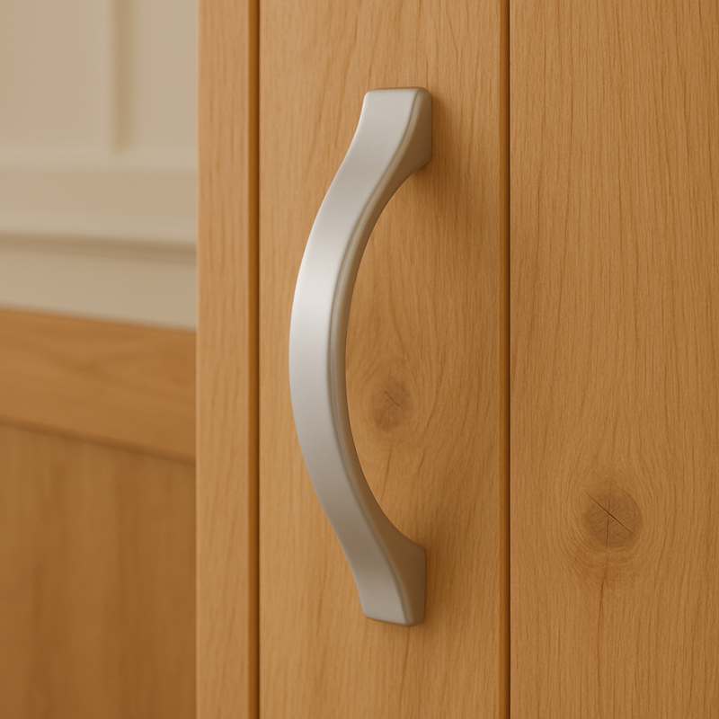 Der geschwungene AGEL-Griff ist eine stilvolle Lösung, die Ihren Möbeln eine subtile Eleganz verleiht und im täglichen Gebrauch praktisch ist. Dank seiner hochwertigen Verarbeitung und seiner ergonomischen Form liegt er angenehm in der Hand und ist ein ästhetischer Blickfang in Küche, Wohnzimmer und Büro.