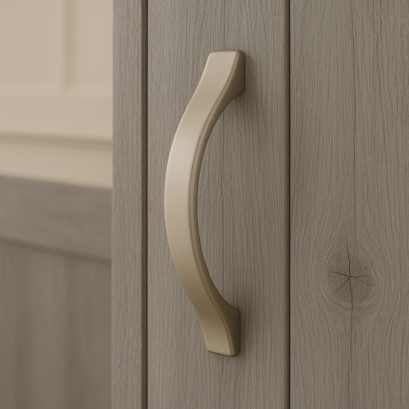 Der geschwungene AGEL-Griff ist eine stilvolle Lösung, die Ihren Möbeln eine subtile Eleganz verleiht und im täglichen Gebrauch praktisch ist. Dank seiner hochwertigen Verarbeitung und seiner ergonomischen Form liegt er angenehm in der Hand und ist ein ästhetischer Blickfang in Küche, Wohnzimmer und Büro.