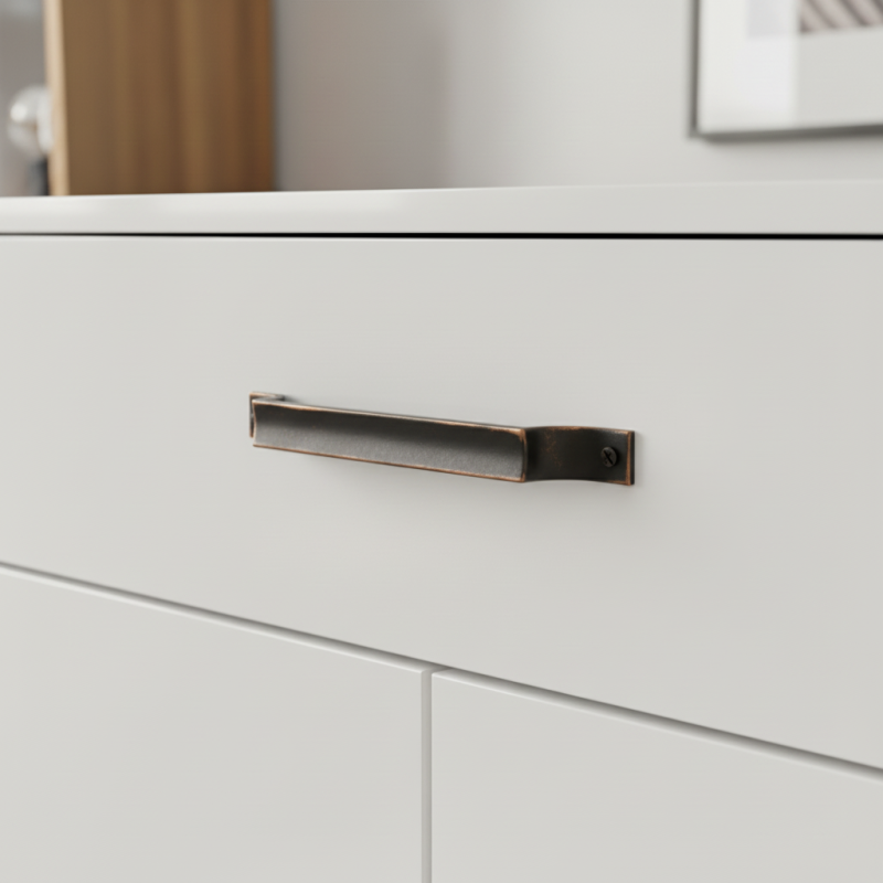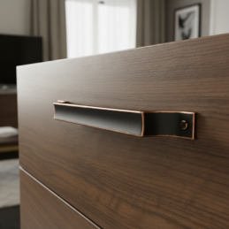 Patiniertes Kupfer verleiht dem Griff einen besonderen Charakter – die sanfte Alterung und die warmen metallischen Töne wirken besonders effektvoll an Küchenzeilen, Kommoden, Schränken oder Möbeln im Vintage-, Farmhouse- oder Loft-Stil.