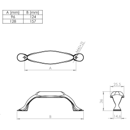 • Lochabstand (A): 96 mm → Gesamtlänge (B): 124 mm
