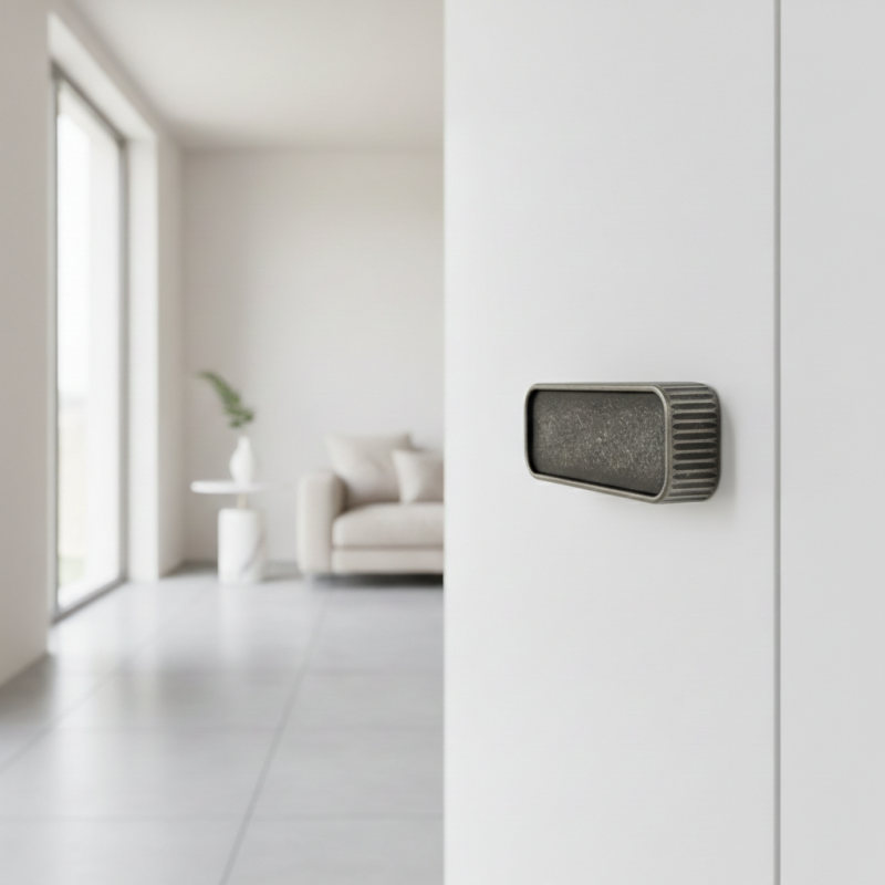 Eleganter Designgriff mit sanft abgerundeter Form und dekorativer Riffelung am Rand, die für einen bequemen Griff und ein markantes visuelles Detail sorgt. Die Oberflächenbehandlung Alt-Silber verleiht dem Griff einen dezenten Vintage-Charakter und macht ihn zur idealen Wahl für klassische, rustikale sowie moderne Interieurs mit einem Hauch von Eleganz. Der Griff eignet sich für Schränke, Schubladen und Kommoden und kann mit dem Knopf LOGAN im gleichen Design kombiniert werden.