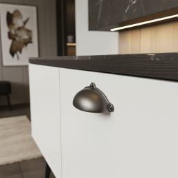 Der Griff MELANIE in titanfarbener Ausführung ist ein modernes, elegantes und vielseitiges Accessoire für den Innenraum. Seine ikonische „Schalenform“ bietet einen bequemen Griff, während der Titanfarbton dem Möbelstück ein raffiniertes, dezent metallisches Aussehen verleiht. Diese Farbvariante ist besonders beliebt wegen ihrer Fähigkeit, harmonisch mit Holz, weißen Oberflächen oder dunklen modernen Dekoren zu kombinieren.