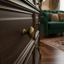 Eleganter klassischer Knopf aus der Kollektion ARLES in der Oberflächenbehandlung Messing Patina glänzend. Er eignet sich für rustikale, Vintage- und Landhausmöbel und ergänzt dank seiner zeitlosen Form wunderschön Kommoden, Schränkchen oder Küchenzeilen. Der massive Metallkörper garantiert eine lange Lebensdauer und ein angenehmes Greifen.