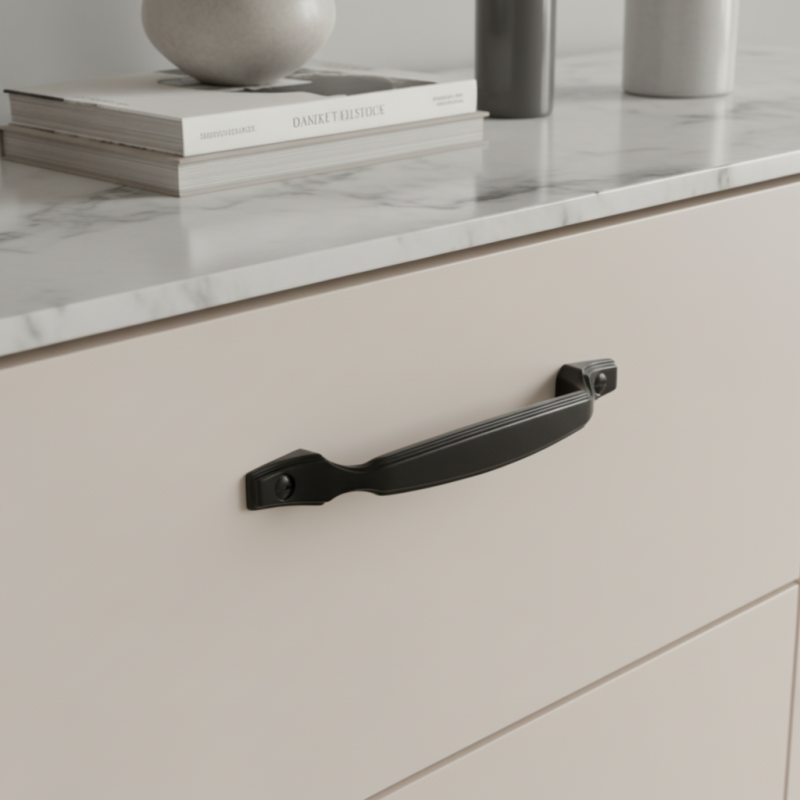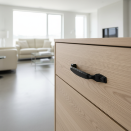 Der Griff CANDACE in der Ausführung schwarz matt ist eine elegante und zeitlose Wahl für jeden Einrichtungsstil – von modern bis klassisch oder rustikal. Die sanft profilierten Linien und die charakteristische Formgebung der Enden verleihen dem Griff optische Leichtigkeit und ein anspruchsvolles Aussehen. Die matte schwarze Oberfläche sorgt für einen markanten Kontrast und verleiht den Möbeln einen luxuriösen, modernen und zugleich universellen Akzent.