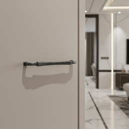 Die Oberflächenbehandlung schwarze Patina bringt eine interessante Textur und natürlich wirkende dunkle Töne, die dem Griff Tiefe und ein authentisches Aussehen verleihen. In Kombination mit Holz, hellen Farben oder Beton entsteht ein markantes Designelement.