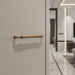Der Griff ist ergonomisch gestaltet, um angenehm in der Hand zu liegen, was ihn zu einer praktischen Lösung für Schubladen und Türen von Küchen- oder Systemmöbeln macht. NEUS harmoniert hervorragend mit Holz, dunklen Farbtönen und Interieurs mit traditionellen Details.