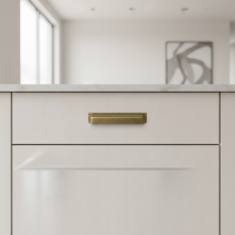 Eleganter Möbelgriff XANA Griff in altmessingfarbener Ausführung ist die ideale Ergänzung für klassische, rustikale sowie moderne Interieurs mit warmem Flair. Die dezent vertiefte Form in Kombination mit der patinierten Oberfläche verleiht den Möbeln einen zeitlosen Charakter und ein angenehmes dekoratives Aussehen.