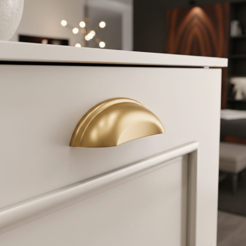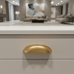 Der elegante Möbelgriff DIAMO in klassischer Muschelform ist die ideale Wahl für Küchenzeilen, Kommoden, Schubladen und stilvolle Möbel. Seine sanft abgerundete Form sorgt für einen angenehmen Griff und verleiht den Möbeln zugleich ein anspruchsvolles Aussehen.