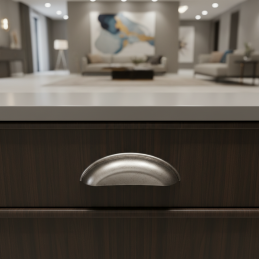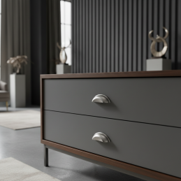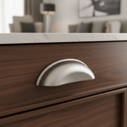 Der elegante Möbelgriff DIAMO in klassischer Muschelform ist die ideale Wahl für Küchen, Kommoden, Schubladen sowie rustikal gestaltete Möbel. Seine sanft abgerundeten Linien und der dekorative Rand verleihen den Möbeln ein traditionelles und zeitloses Aussehen.