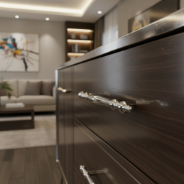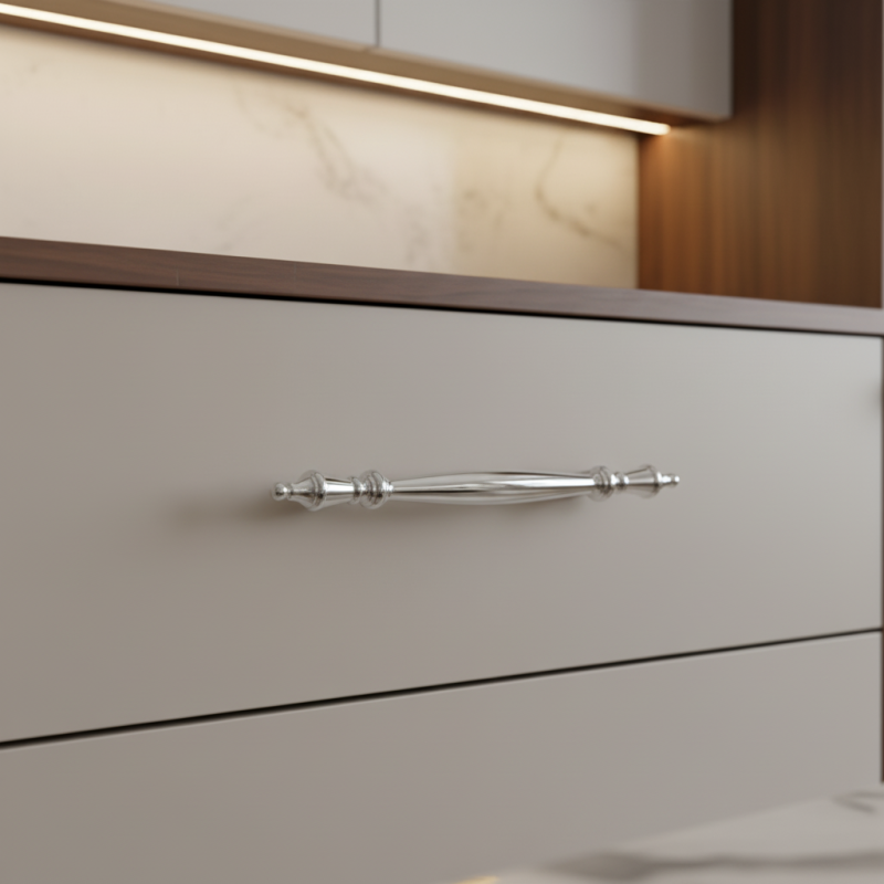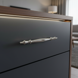 Der Griff SANDVIKA in der Ausführung glänzendes Chrom ist die perfekte Wahl für Innenräume, in denen klassische Eleganz mit modernem Glanz verschmilzt. Ihre ausgefeilte Form mit dekorativen Elementen wirkt edel und verleiht Möbeln einen außergewöhnlichen Charakter – egal ob Kommoden, Vitrinen, Schränke oder Schubladen.