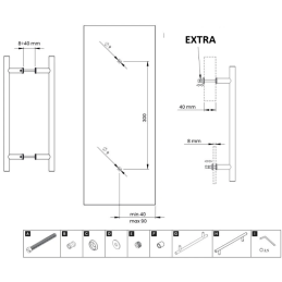 Der Griff besteht aus einem widerstandsfähigen Material mit präziser Oberflächenbearbeitung, die eine lange Lebensdauer und komfortable Nutzung garantiert. Die Montage erfolgt gegenüberliegend – das Set enthält 2 Griffe. Im Lieferumfang ist auch eine Dichtung für die Montage an Glas enthalten, die die Oberfläche vor Beschädigungen schützt.