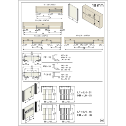 Abschlussprofil für Einbauschranktüren mit 18 mm Materialstärke. Es wird an der Ober- und Unterseite der Tür verwendet, um das Design der Tür mit den Profilen abzustimmen und die Kante der Spanplatte nicht zu sehen und gleichzeitig ist es nicht notwendig, die Ober- und Unterseite der Tür abzustreifen.