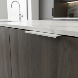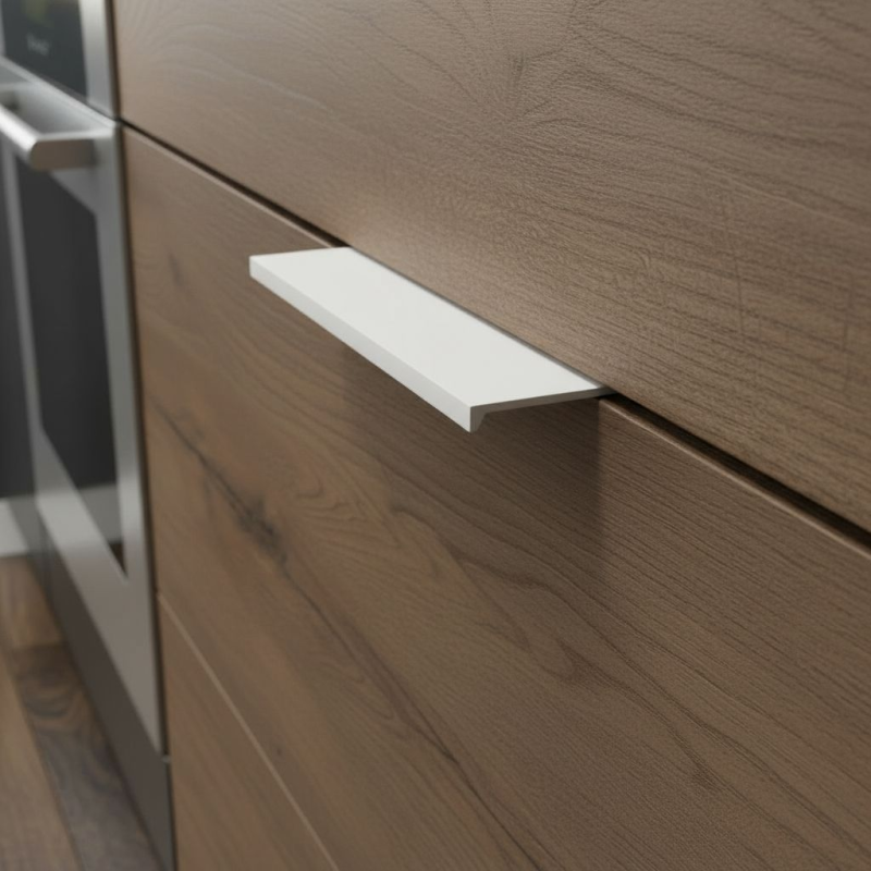 Der Griff RIOS in modernem Design weiß matt ist die ideale Lösung für luxuriöse Innenräume und Design. Er wird direkt an der Kante (oben oder seitlich) montiert und sorgt so für ein sauberes, elegantes und sehr praktisches Erscheinungsbild.